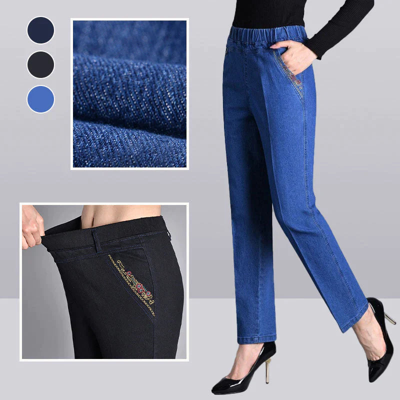 ✨ Γυναικείο τζιν με πλαϊνές τσέπες και ελαστική ζώνη