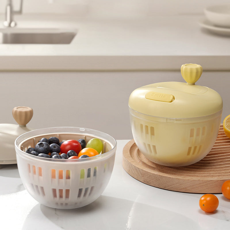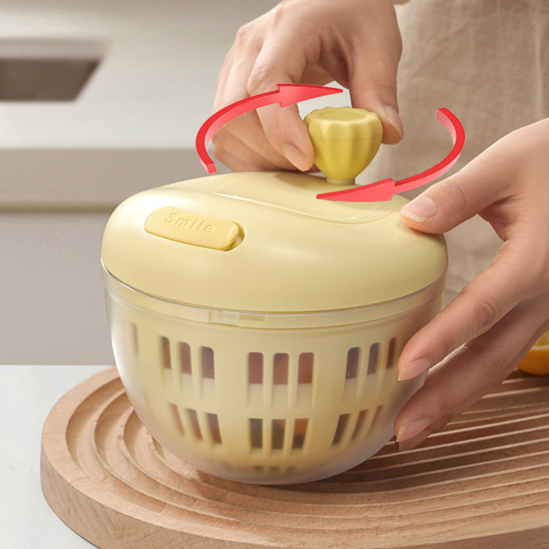 Rankinis sukimosi mechanizmas leidžia sklandžiai ir lengvai suktis 360°. Didelis sukimosi greitis greitai ir kruopščiai pašalina vandenį, todėl vaisiai ir daržovės ilgiau išlieka švieži ir sausi.