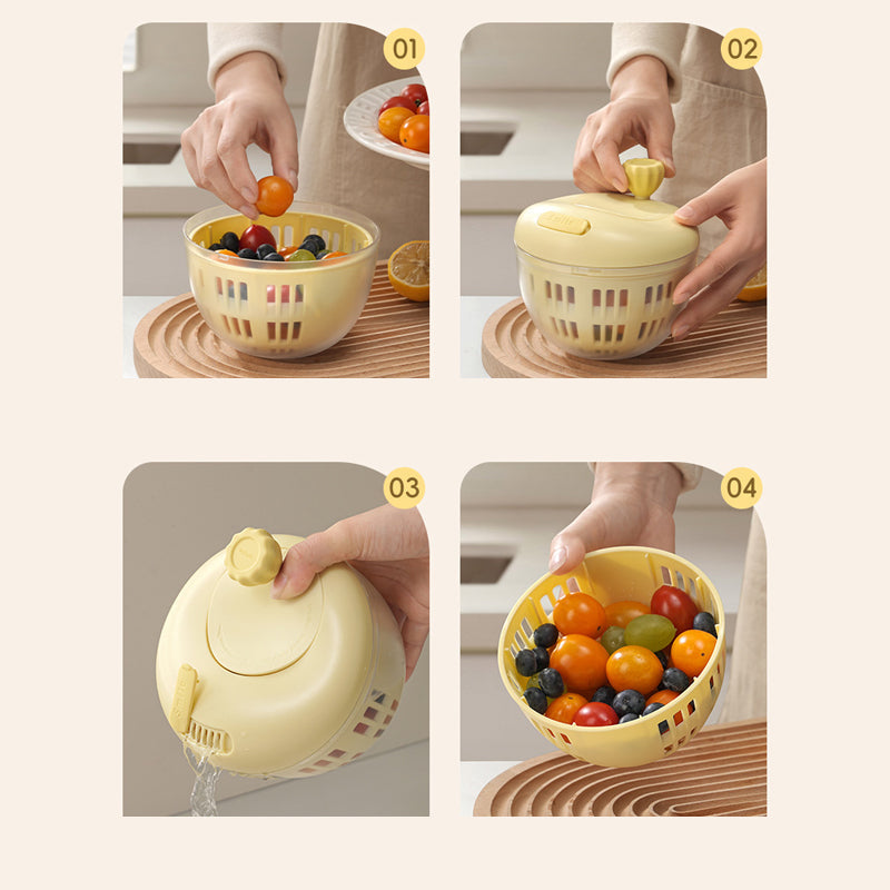 Jis sujungia plovimo, nusausinimo ir laikymo funkcijas. Idealiai tinka vaisių ir daržovių valymui, vandens pertekliaus nusausinimui ir patogiam ingredientų laikymui – visa tai viename kompaktiškame įrenginyje.