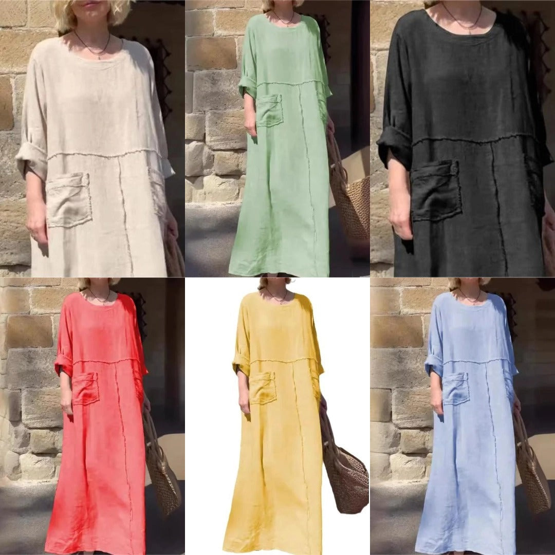 🌿Μόνοχρομος φόρεμα με στρογγυλή λαιμόκοψη, αναπνέει🌪️-GR