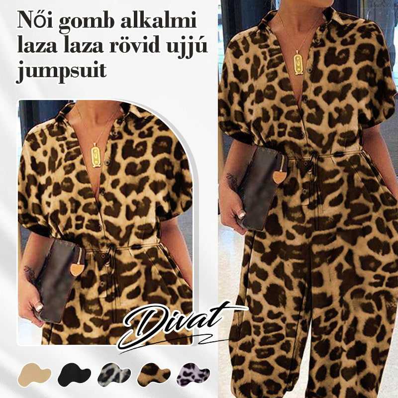 💜✨Γυναικεία φόρμα ολόσωμα με κουμπιά, φαρδιά γραμμή και κοντά μανίκια-GR