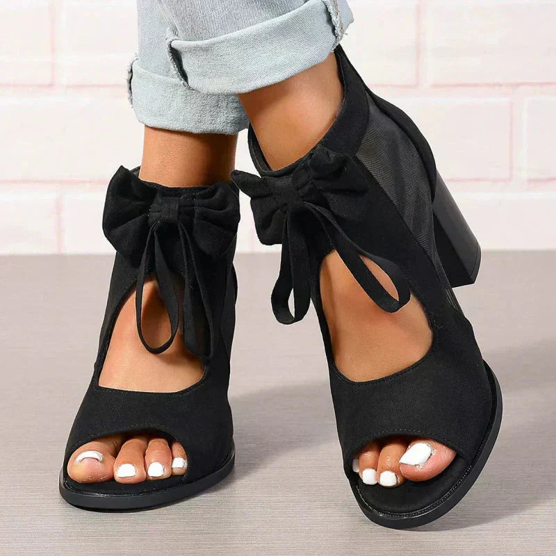 ✨Γυναικεία πέδιλα με φιόγκο και ανοιχτή μύτη σε ψηλοτάκουνο-GR