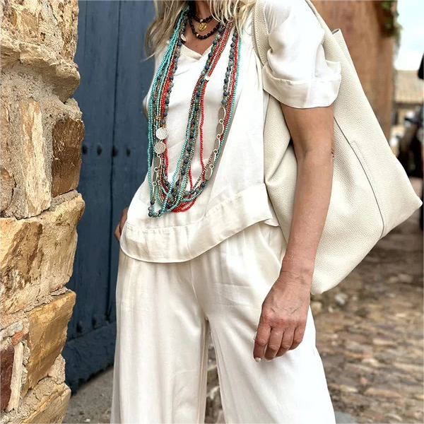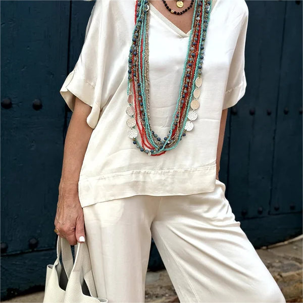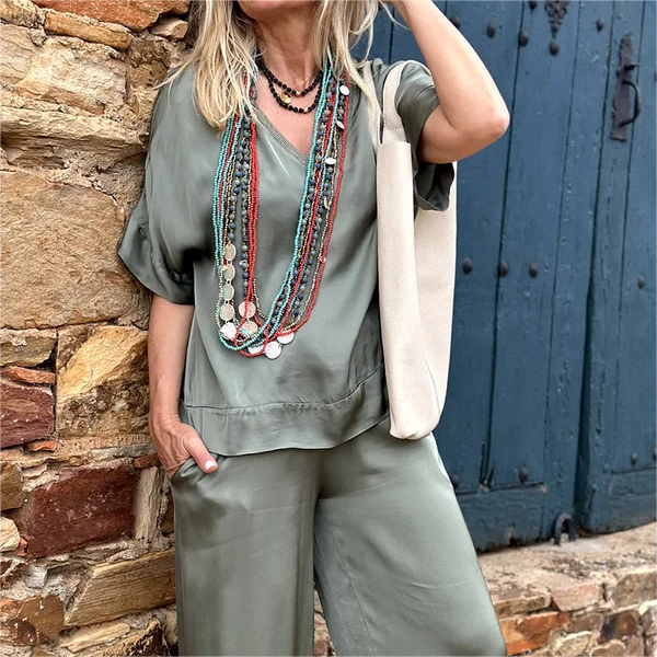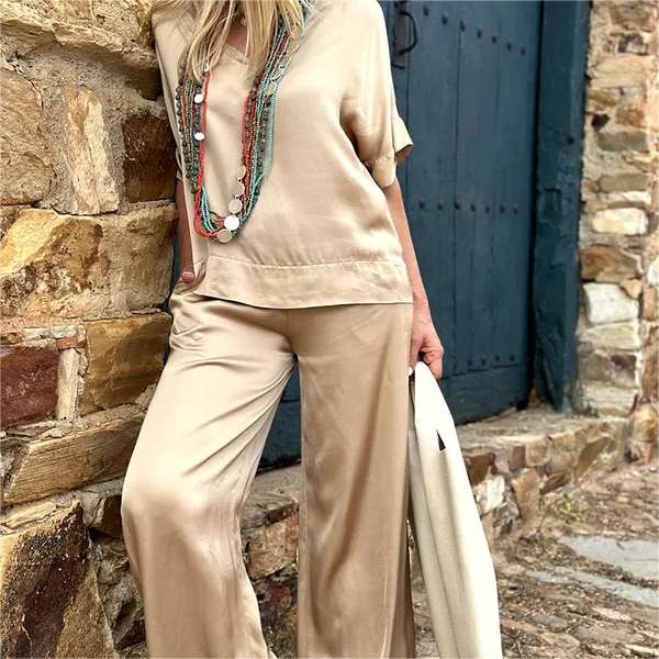 💝Κοντά μανίκια, φαρδιά πατής, set 2 τεμαχίων✨-GR