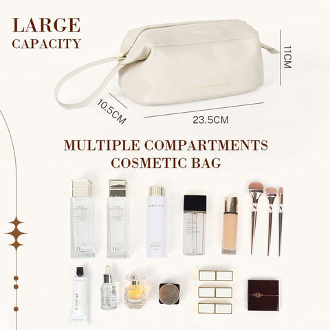 Dvojvrstvová kozmetická taštička z krémovej kože, ktorá je mäkká a prémiová ako oblak.