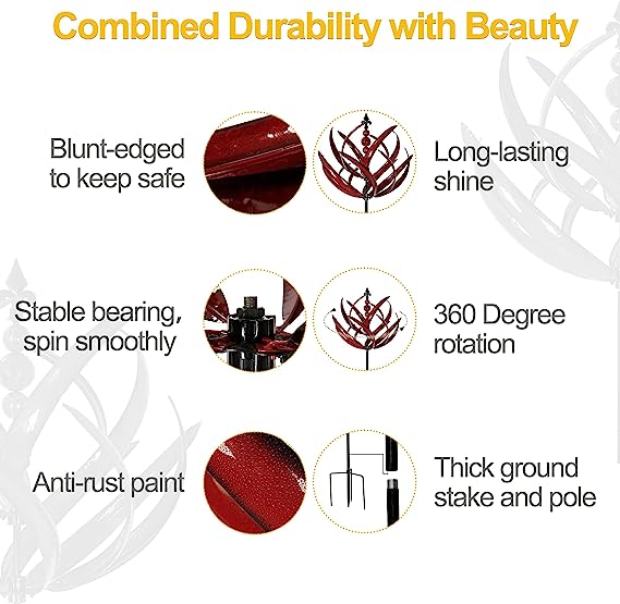 Montážne zariadenie: nuestro molino para viento para jardín nie sú potrebné žiadne káble, sú montážne zariadenia podľa pokynov. Môže byť vystavený v hlavných dverách alebo v zadnej záhrade. Extra veľká veľkosť, ľahko upútať pozornosť ostatných.