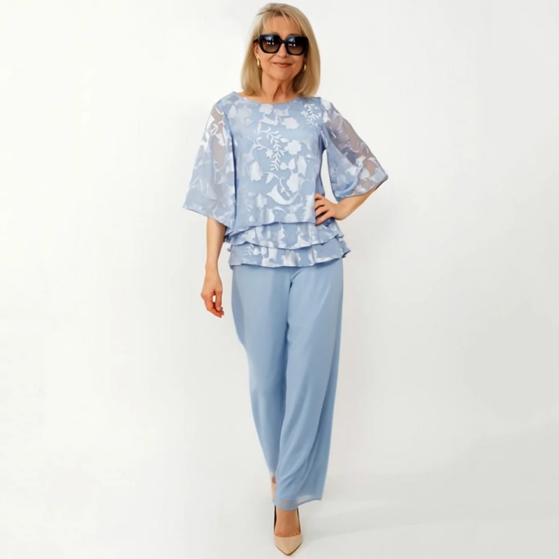 UNIVERSALUS ĮVAIRIOMS PROGOMS: Nesvarbu, ar einate į vėlyvuosius pusryčius, sodo vakarėlį, ar į neformalų renginį, šis elegantiškas dviejų dalių komplektas pasižymi nesenstančiu stiliumi, kuris puikiai dera su aukštakulniais, basutėmis ar bateliais be kulnų.