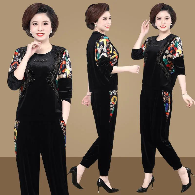 Elegantný 2-dielny set top z nadrukiem i spodnie z kieszeniami