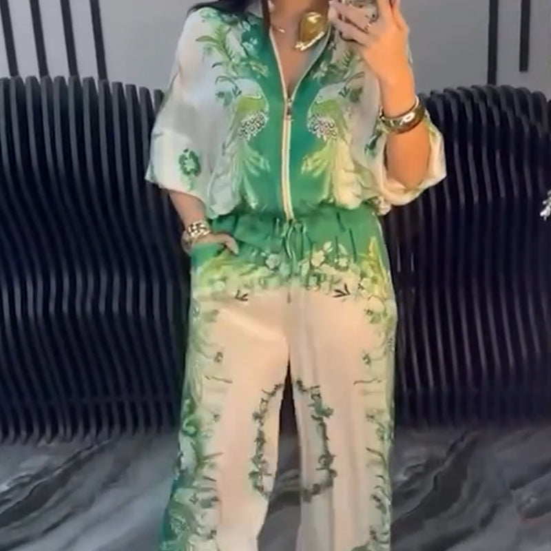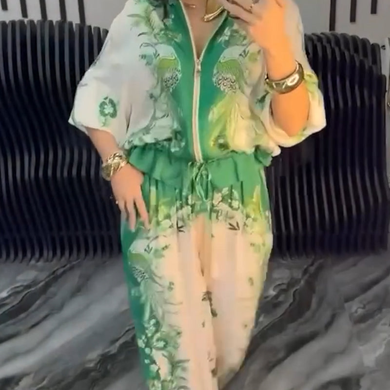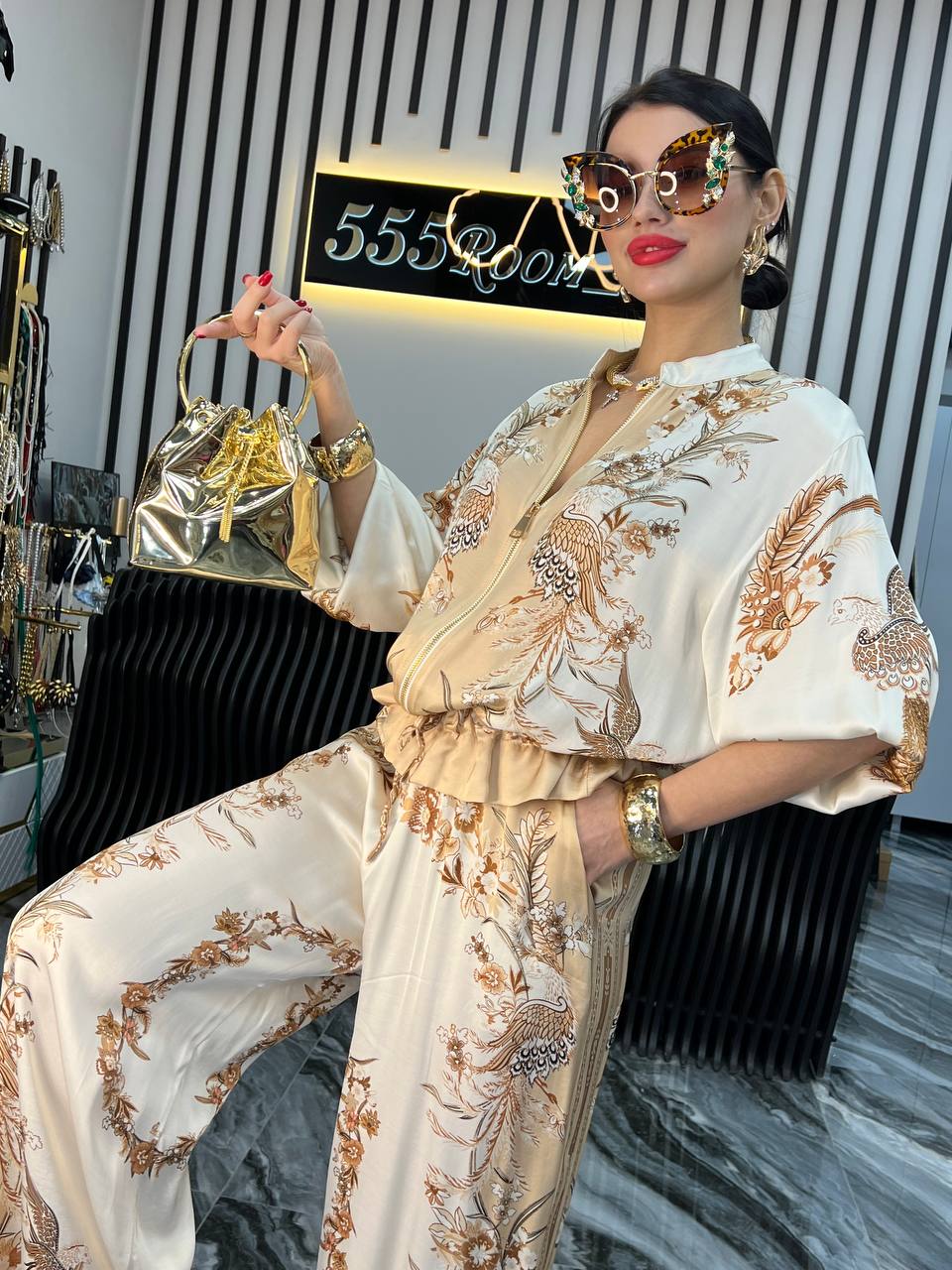Elegantiškas gėlių raštas: šis dviejų dalių rinkinys pasižymi subtiliais gėlių atspaudais, suteikiančiais elegantišką įspūdį, kuris be vargo paryškina jūsų rafinuotą stilių tiek kasdienėms, tiek iškilmingoms progoms.