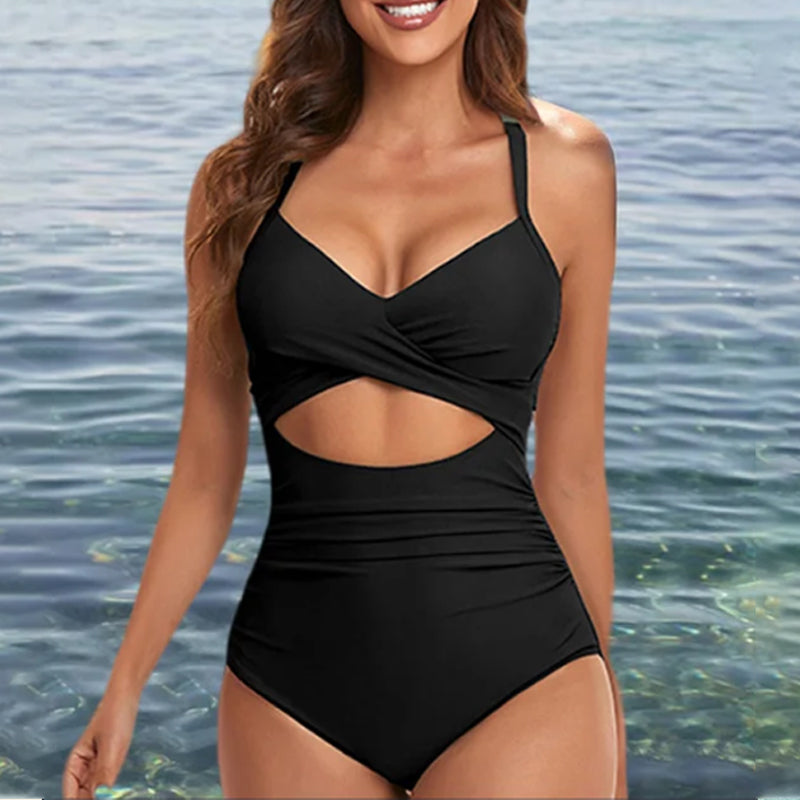 MOODNE LÕIK: V-kujuline lõige kaelas lisab ujumistrikoodele vaëa, näidates välja kumerused, sämädes samas päikkuse.