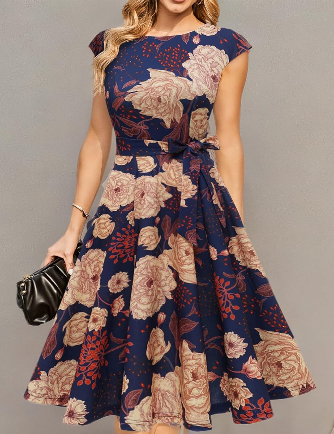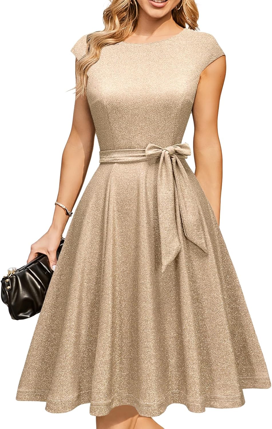 2025 m. pavasario/vasaros suknelės: Ši laisvalaikio vestuvių svečio suknelė puikiai tinka tiek elegantiškoms progoms, tiek kasdienai! Kepurės su kepuraitėmis paryškina jūsų pečius! Ši tampri ir laisvai krintanti vakarietiško stiliaus suknelė yra patogi ir aptempta ties juosmeniu, bet ne per ankšta.