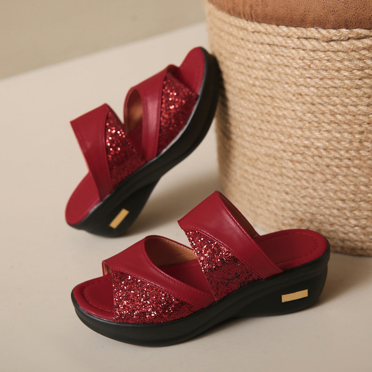 Dámske ortopedické sandále s vysokými podpätkami a brokátom-SK